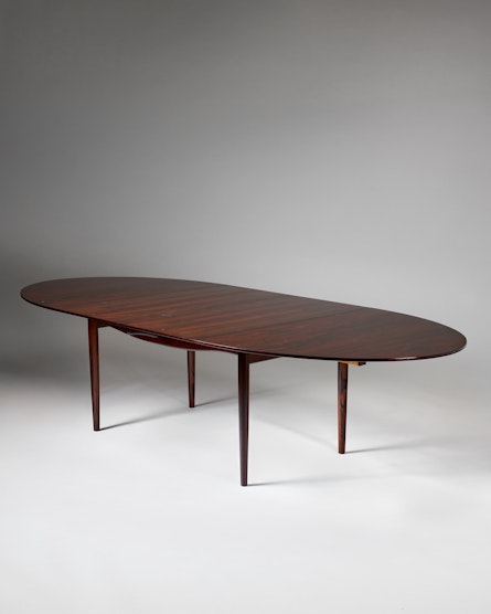 Finn Juhl, a central figure in mid-century Danish modernism, often explored how furniture could shape atmosphere as much as space. In the “Judas” table he achieves precisely that: an exclusive, thoughtfully detailed centrepiece that invites close observation while remaining eminently practical for everyday dining and conversation.